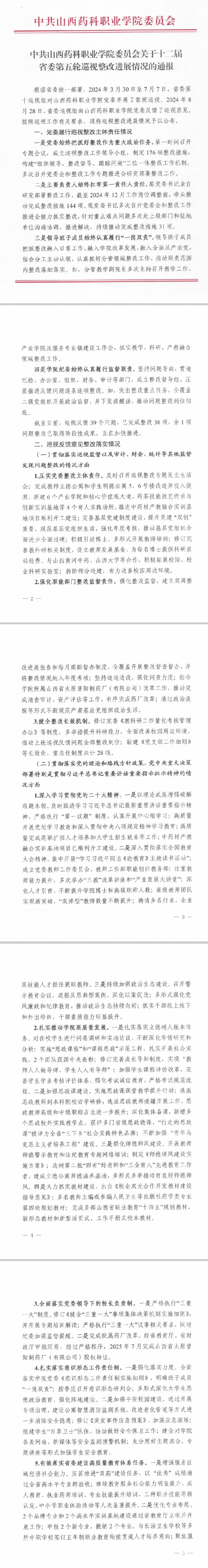 中共122cc太阳成集团委员会关于十二届省委第五轮巡视整改进展情况的通报