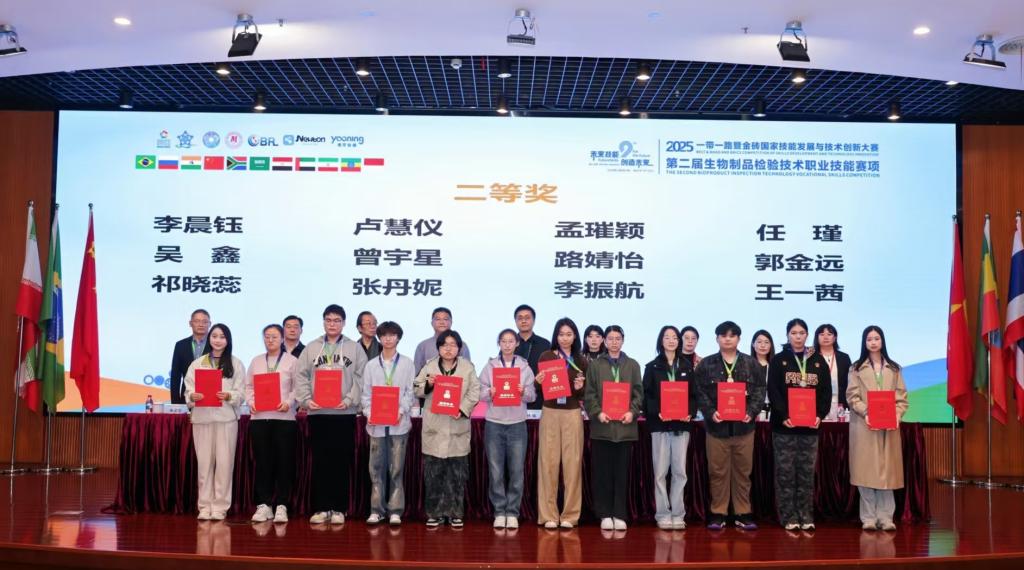 11月6日至9日,2025一带一路暨金砖国家技能发展与技术创新大赛第二届生物制品检验技术职业技能赛项在浙江经贸职业技术学院圆满落幕。我院2024级生物制药技术2班学生任瑾、曾宇星斩获二等奖,老师张琰、王一荣获优秀指导教师。